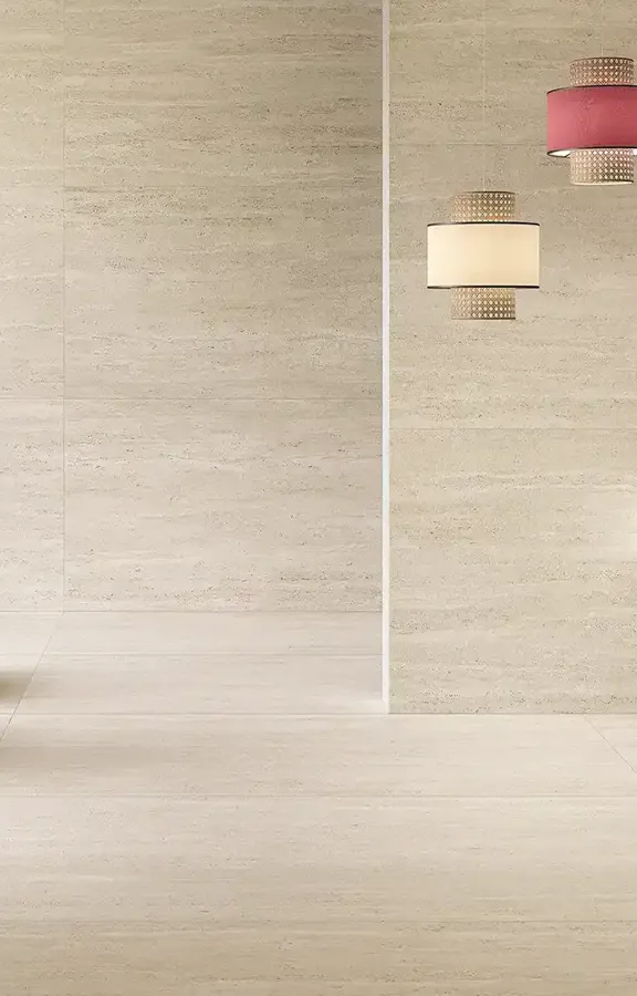Omnia racchiude, come uno scrigno, una varietà di grane, texture e tonalità che raccontano le profondità insondabili della Terra: Bianco Venezia, Pietra dei Pirenei, Emperador Silver, l’antico Travertino di Rapolano, il Bleu de Vix, il Ceppo di Gré. Le piastrelle Omnia sono disponibili in otto sfumature di colore diverse, pensate per donare un elegante effetto pietra a pavimento e rivestimenti in ambienti interni.