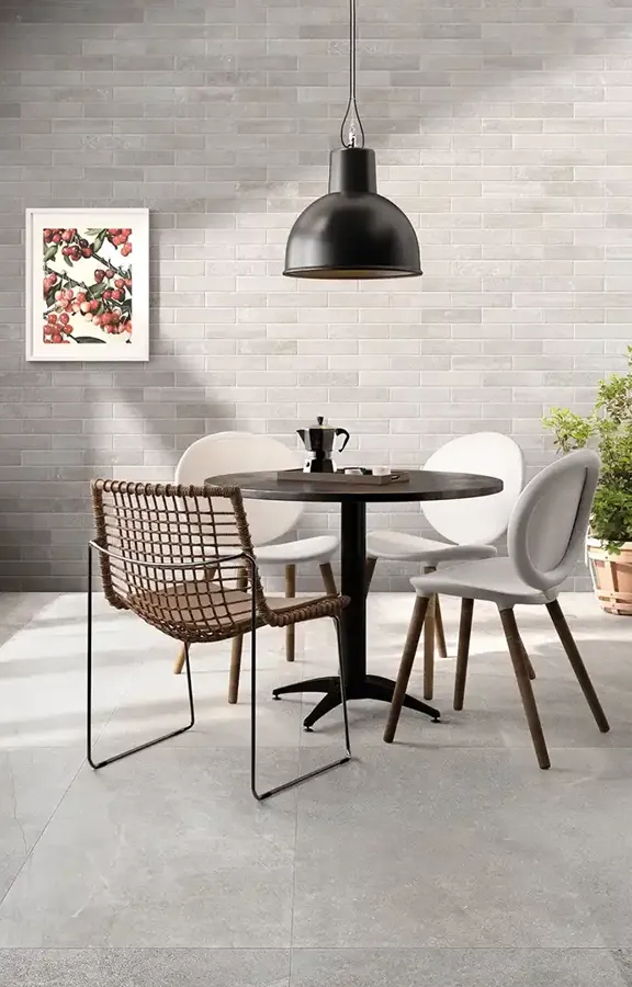 Stellen Sie sich vor, Sie sind von einer tadellosen mineralischen Textur umgeben, in der sich die Fliesen mit Kalksteinoptik der Kollektion Dunstone mit beispielloser Anmut in prestigereichen, dezenten und detailreichen Umgebungen entfalten.