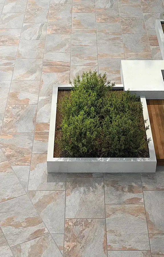Natural stone effect tiles for outdoors