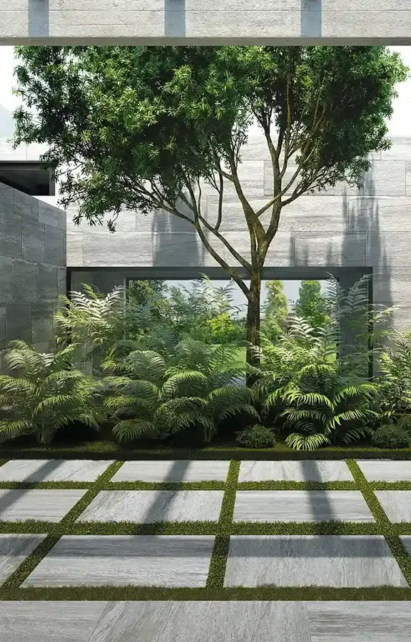 El material cerámico interpreta la naturaleza con una perfección obsesiva y se enriquece con una nueva generación de superficies inéditas de gres porcelánico imitación piedra para interiores y exteriores.