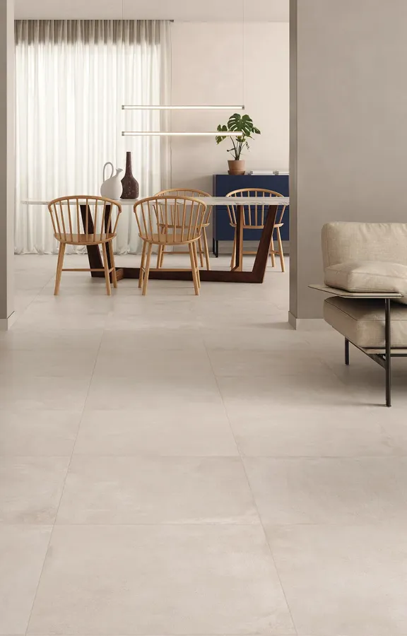 Urban est la collection en grès cérame effet béton de la gamme Smart, conçue pour les environnements qui exigent résistance et personnalité. La surface à l'aspect texturé et vieilli allie esthétique contemporaine et durabilité, répondant ainsi aux exigences des espaces soumis à un usage intensif.