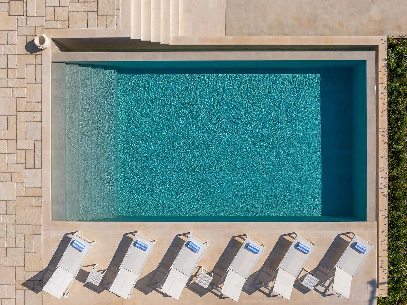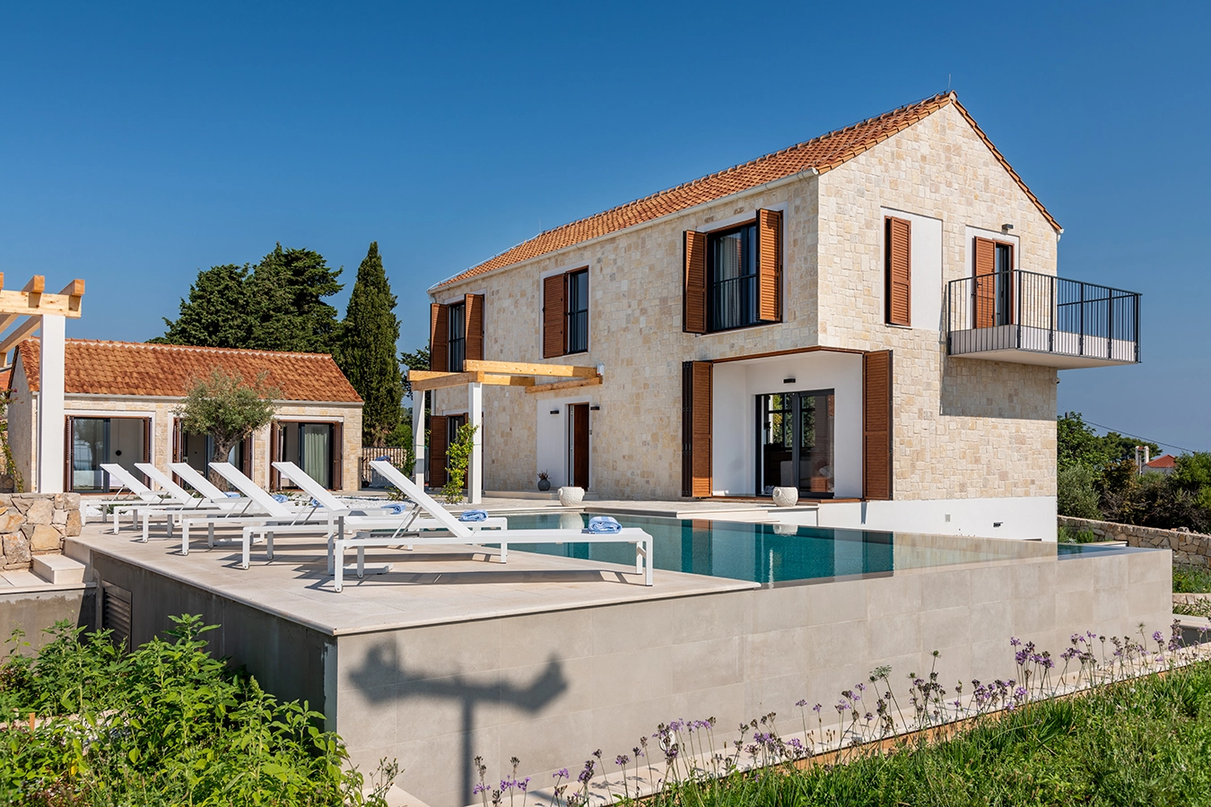 Il progetto rappresenta un capolavoro di equilibrio tra comfort moderni ed estetica tradizionale. Il resort si compone di due case in pietra dalmata di nuova costruzione, due campi da padel privati, una cucina esterna professionale e un'area lounge & bar. Tuttavia, il vero protagonista è la grande piscina a sfioro (infinity pool), che regala una vista mozzafiato sul canale di Brač e sullo skyline di Spalato.
