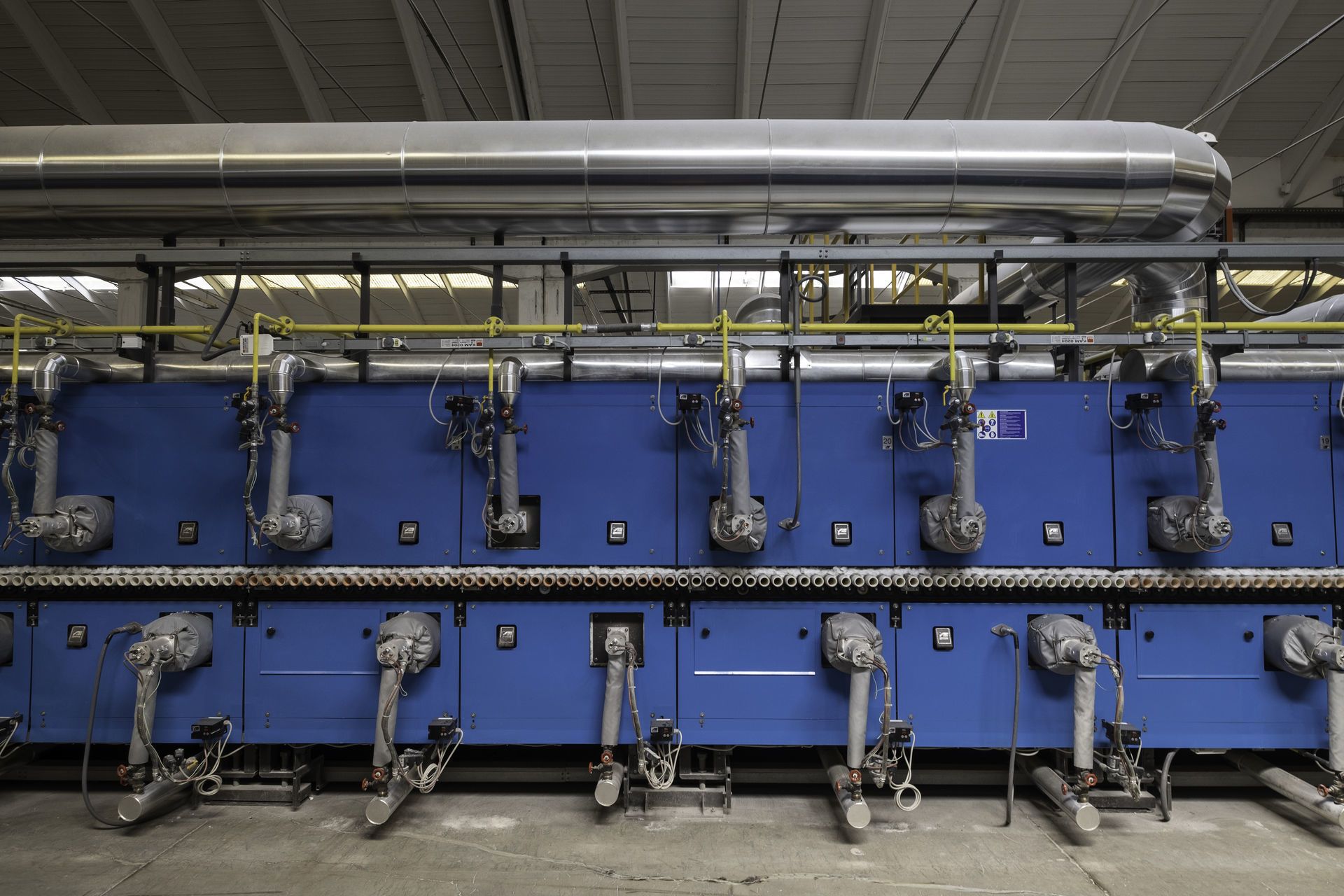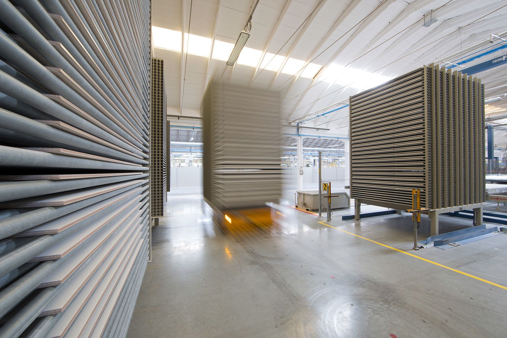 Полученная в результате прессования плитка высушивается, чтобы довести ее процентную влажность до значений, позволяющих выполнить обжиг в роликовых печах, достигающих температуры 1250° C, что намного превышает температуру обжига всех остальных керамических изделий. Продолжительность цикла обжига и его высокая температура являются необходимыми условиями для получения спеченного, компактного, не пористого (и следовательно - непоглощающего влагу) изделия.