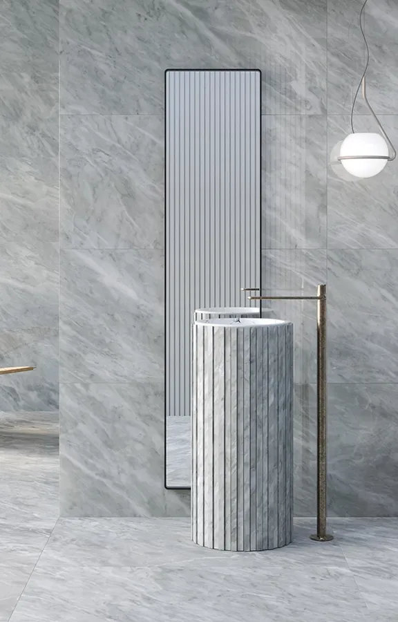 При проектировании ванной комнаты перед владельцами дома встает важная задача: объединить изысканную эстетику с безупречной функциональностью. Это личное пространство должно не только стойко переносить ежедневные нагрузки и постоянную влажность, но и отражать индивидуальность хозяев, обеспечивать атмосферу уюта и покоя. Серая плитка из керамогранита становится все более популярным выбором в современном дизайне, благодаря своей изысканной нейтральности она легко вписывается в любую концепцию интерьера. От мягких, расслабляющих интерьеров в стиле спа до смелых современных решений – серый цвет служит идеальным фоном для оформления любого пространства, поскольку дает возможность раскрыть его потенциал, не доминируя над ним.